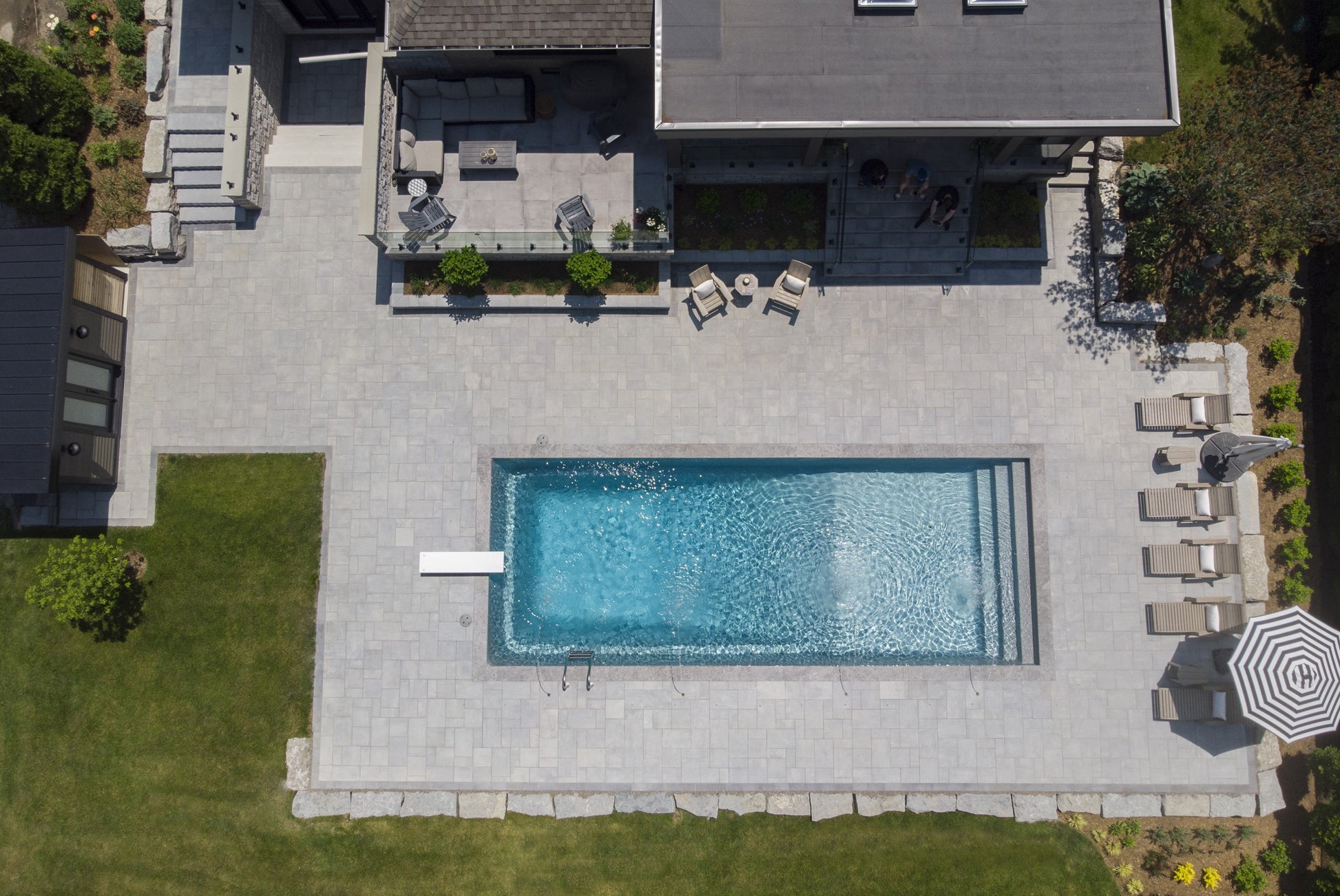 Transform your outdoor space with Huntington, a large format slab featuring a sleek, modern surface. Whether used as a border or accent, Huntington adds a touch of beauty to any landscape. Enhance your design further by pairing it with Huntington Small Rectangle or Corso.